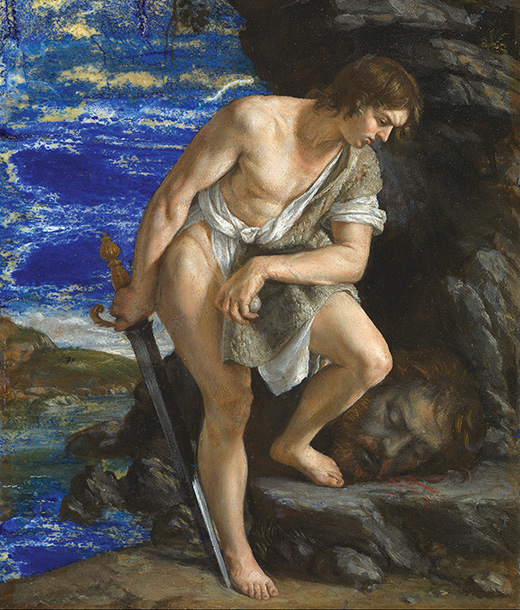 Apart from the chance invention of Prussian blue soon after 1700, the range of colours available to artists changed very little until the 19th century, when modern chemistry came into its own. Painters, of course, were not the only or, in most cases, the main consumers of these colours. They were used, for example, in the dyeing of cloth, the production of ceramics and for the decoration of all types of object, including buildings and sculpture as well as products for domestic use. Thus Venice’s industrial and mercantile strength, rather than its flourishing artistic tradition, made it a centre of the European trade in colours. The current exhibition at the National Gallery, Making Colour (until 7 September), illustrates the characteristics and use by painters of the principal types of pigment, also showing the changes made possible by the introduction of new types of paint after 1800. Most of the exhibits are drawn from the gallery’s own holdings, with a few loans from other museums and private collections in Britain. There is no catalogue as such, but labels are informative and clear, and the main themes, together with many of the specific examples, are discussed in A Closer Look: Colour by David Bomford and Ashok Roy, published by the National Gallery in 2009, the second edition of a book that first appeared in 2000. Most of the rooms are devoted to a single colour, and in addition to paintings there are specimens of pigments and the materials from which they are derived, whether mineral – for example lapis lazuli, which came from Afghanistan and was extraordinarily expensive – or animal or vegetable; the last two were the main sources of different types of red. Particularly striking is a small picture from a private collection, a well-known composition by Orazio Gentileschi, which is painted directly onto a polished sheet of lapis lazuli representing the sky.