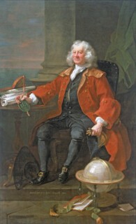 The third picture by Hogarth in the Foundling Museum, Captain Thomas Coram, is an example. Coram was the main founder of the hospital, and he is portrayed displaying the seal of the Royal Charter he had obtained for the charity from the king. He was the son of a master mariner from Lyme Regis who established a successful shipyard in the Massachusetts colony before retiring to England around 1720. He never made a fortune, but won a reputation for honesty and disinterestedness such that his long campaign to establish a hospital for foundlings, funded by private donations, was eventually successful. This was the portrait, Hogarth wrote, which he painted ‘with most pleasure’, mainly on account of his admiration for Coram. It shows a rubicund, rather tubby man, with an untidy shock of white hair – he evidently never wore a wig – dressed in what appears to be his customary suit of solemn black, but with a plain, reddish-brown greatcoat. As Einberg puts it, he ‘eschews any aggrandisement of his own person, either by conventional gesture or dress’. There is, to borrow Hallett’s terms again, a striking combination of benevolence and especially directness in his expression. He achieves an air of great dignity by refusing to stand on his dignity.