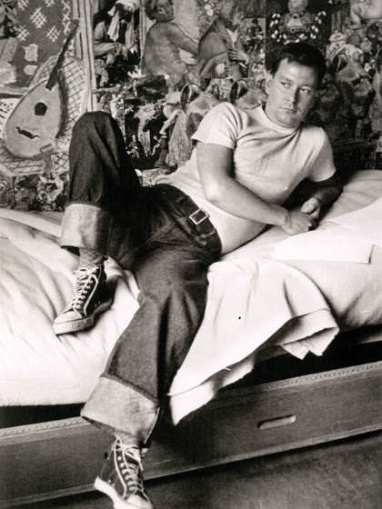 Clothes come between the naked self and the world, as does writing. Where the dividing line is drawn varies. For Crisp and Sitwell their appearance was part of their work and of themselves: they were performers as much as writers; while Oscar Wilde’s clothes were an ironic complement to his writing. A leading member, with his wife, Constance, of the Rational Dress Society, which campaigned to remove the constraints of conventional clothes, especially the corsets and bustles that afflicted women, Wilde had a conception of rational dress that saw him arrive in New York for a lecture tour wearing ‘a low-necked white shirt, with a turn-down collar of extraordinary size, and a large light-blue silk neck scarf’ set off with a fur-lined ulster, turban and pale pantaloons. His dress was a form of hiding in plain sight and it worked – it wasn’t the clothes that undid him. He was disparaging of fashion – ‘a form of ugliness so absolutely unbearable that we have to alter it every six months’ – and Newman makes the point that fashion has followed writers more often than the other way round. Beauvoir inspired the Beatniks and Joe Orton’s ‘rough casualness’, the heavy jeans with deep cuffs and tight white T-shirts, influenced Vivienne Westwood and Malcolm McLaren to call their King’s Road shop Sex after an entry in Orton’s diary: ‘sex is the only way to infuriate them.’ They stocked a suitably lurid Prick Up Your Ears T-shirt.