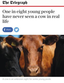 ‘What do you have to say about THIS?’ a woman demanded, presenting her with a folded and clearly cherished clipping from the Telegraph, in which it was reported that one in eight young people had never seen a cow in real life.