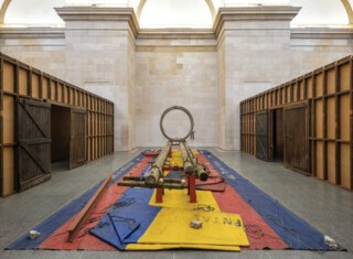 You enter Mike Nelson’s installation The Asset Strippers, Tate Britain’s latest commission for its Duveen Galleries (until 6 October), through a pair of wooden swing doors salvaged from the old Royal National Orthopaedic Hospital on Bolsover Street. For several years, Nelson has been acquiring industrial machinery and related artefacts from online auctions and liquidation sales; the first object in the exhibition is a wheeled pneumatic paint sprayer: a thing of tubes and cylinders, coiled rubber hose and steel nozzle, all caked in dark red paint. Behind the sprayer – which vaguely resembles the ‘bride’ or one of her mysterious machinic ‘bachelors’ in Duchamp’s Large Glass – sit various towering contraptions, oil-stained and blackening: a meeting of anthropomorphic or zoomorphic machines, with their great heads and fragile limbs, their blank gazes made of lights and dials. Many of them are painted in colours peculiar to their manufacturers: the eau de nil of Wadkin of Leicester; the vivid blue of H.W. Ward & Co., Birmingham.