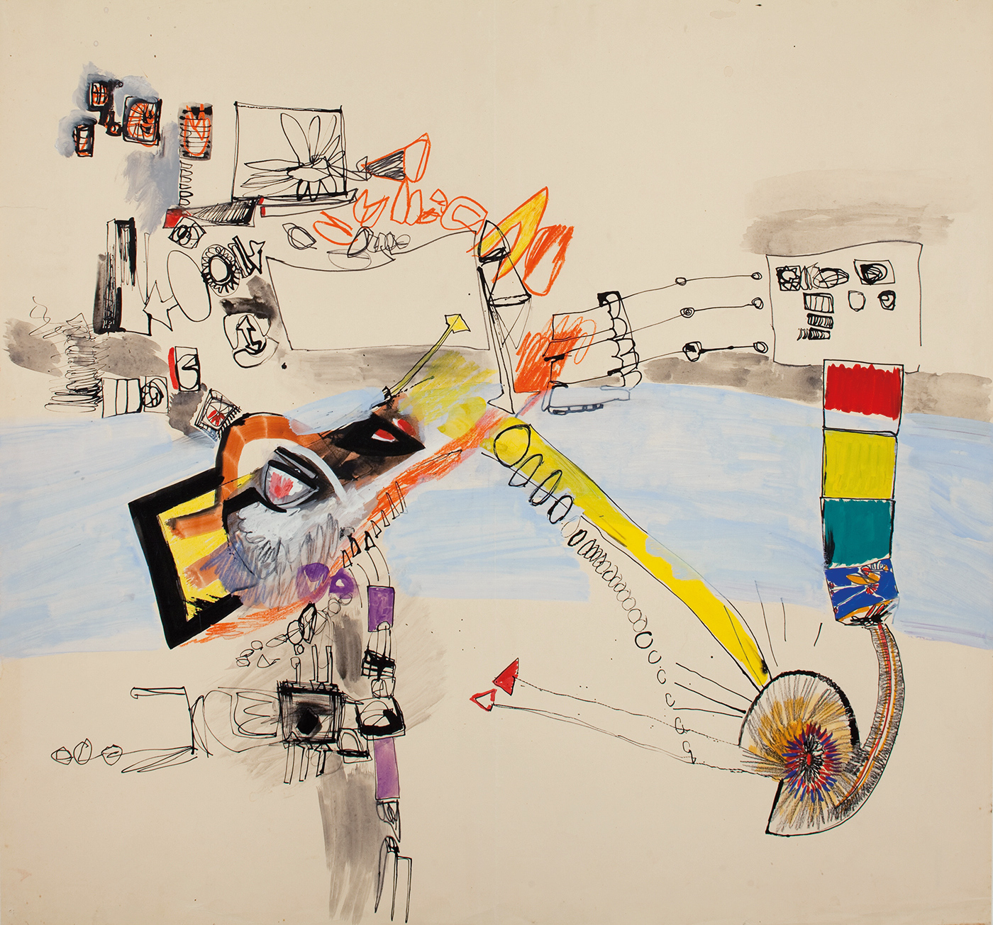Among the images in the Oberlin catalogue, there are many that, at first, I didn’t remember seeing. Bit by bit the forgotten imagery came back to me: from the early 1950s, a set of gorgeous floral watercolours, each awash with colour; rapidly inked nudes of seated models; a group of increasingly capable post-Cubist abstractions. These are the works that gained her admission to Yale: I think I can see why. Over time, she seems to have arrived at the understanding that what mattered wasn’t colour, but line. Then, at some now lost moment between the life drawings and the post-Pop body parts, something fund amental seems to have changed. It’s as if Hesse was beginning to think of human bodies not as smoothly interlinked systems but as surprisingly haphazard assemblies: in one drawing as limp as flattened boxes; in another boldly twisted, like the outflow under the sink. Is a machine like a body? Are they soft or hard? Can they link up and have sex?