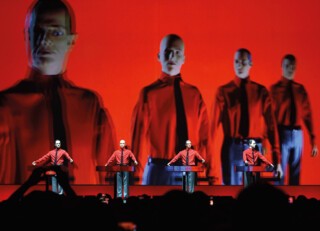 From all Schütte says about Kraftwerk’s ‘total work’, you’d think the K-bots would be barely distinguishable from the real thing – but instead they look a bit tacky and amateurish: middle-aged, mothballed Thunderbird puppets. As David Stubbs puts it in Future Days: Krautrock and the Building of Modern Germany (2014), there is ‘the air of belonging to some bygone astronaut era, veterans of an abandoned space project.’ The fact that Kraftwerk have produced so little since the mid-1980s, he adds, ‘only exacerbates this sense’.