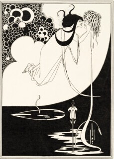 Two months later he designed the cover and four illustrations for the first issue of the Yellow Book, which became the house magazine of the aesthetic movement, and of which Beardsley was art editor. Articles by Henry James, Frederic Leighton, president of the Royal Academy, and other luminaries were overlooked in the outcry at what the Times described as the ‘repulsiveness and insolence’ of Beardsley’s pictures. This time there was nothing overtly sexual in them, but an unmistakeable aura of concupiscence clings to the figures, some masked, one a leering old Pierrot, another a woman out alone at night. The ‘insolence’ presumably consisted in Beardsley’s disregard for academic rules of proportion – heavy heads on drooping bodies or tiny heads above great tents of drapery. His sinuous line was inflected with what would come to be called Art Nouveau, a movement for which the English showed marked distaste. The Yellow Book became another succès de scandale.