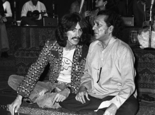 Shankar’s popularity was such that he was able to fill the Royal Festival Hall in 1958. The next time he played there was in October 1963. That same evening, across the Thames at the London Palladium, the Beatles were playing in front of a live television audience. At this point, George Harrison hadn’t discovered Indian music. He first picked up a sitar on the set of Help! in 1965 – there was a scene set in an Indian restaurant – and later that year heard about Shankar, buying his records and a ‘crummy’ sitar of his own, which he took with him to Abbey Road when the Beatles recorded ‘Norwegian Wood’. His shadowing of the lead melody line on sitar was technically amateurish, but the sound of the sitar implanted into the standard rock group line-up of electric guitars, bass and drums helped push Shankar into mass consciousness. Harrison and Shankar finally met in 1966. It was a true bromance. Unlike most of the people in Harrison’s life, Shankar never fawned. He was deeply unimpressed by ‘Norwegian Wood’ and the other attempts the Beatles had made to flavour their songs with Indian sounds. But he saw a quality in Harrison that he liked and offered to teach him the sitar – properly.