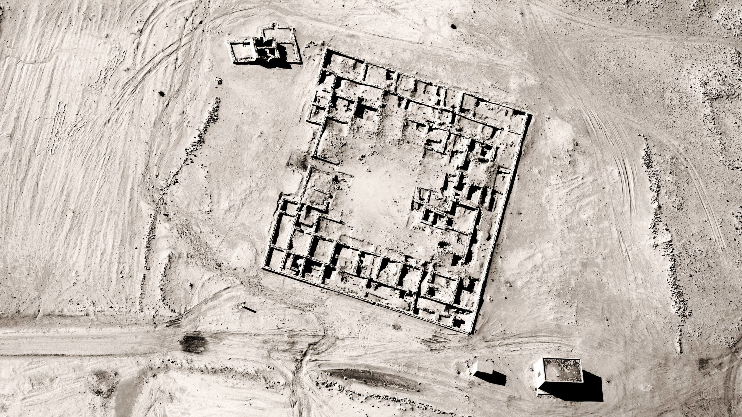 Jananne Al-Ani is an artist whose recent work has done much to illuminate the ways in which modern media can resemble a process of delineation: a drawing or writing with light (photo-graphy) or with motion (cinemato-graphy). The resemblance is established in Shadow Sites I (2010), which reinscribes by means of its own kind of graphic manoeuvre an already existing inscription. A shadow site is a built structure invisible at ground level, but thrown into dramatic relief when viewed from above by the slant of the sun’s rays at dawn or dusk. At such moments, the ground itself becomes, as Al-Ani puts it, a ‘latent photographic image of a past event embedded in the landscape’. In Shadow Sites I, a series of vertical tracking shots scan the record of systematic disturbance drawn or written on the surface of the southern Jordanian desert by centuries of human habitation: field system, quarry, compound, fortification, industrial and agricultural facility. Their soft, grainy texture fosters a captivating dreaminess. But then faintly menacing bursts of atmospheric noise on the soundtrack – the wind, an aeroplane engine – suggest that there are nonetheless questions to be asked both of this particular stretch of terrain and of the methods employed to scan it. What sort of evidence of past events might be revealed by the film’s photographing of the ‘latent photographic image’? Shadow Sites I aims both to evoke and to provoke.