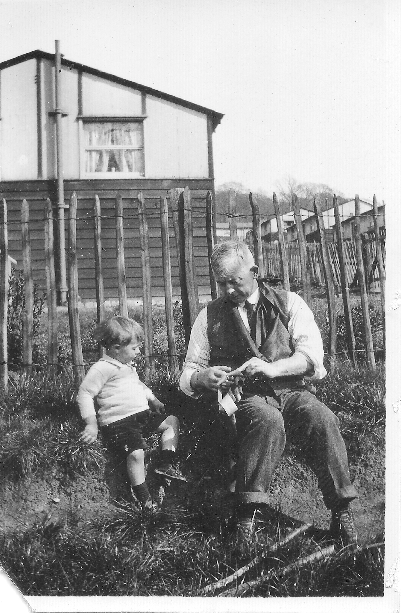 As I remember him, kind but mostly silent, smelling of Old Holborn and doing the pools, he was still anxious, picking fretfully at his fingers. When he was discharged with a pension of eight shillings, calculated on the basis of his having suffered 20 per cent disability, he got a job with a printer. By then, his own family had largely dispersed. A sister emigrated to the US, one brother went to South Africa and another to Canada. They had always been peripatetic; in truth, they were flitters. When I asked Grandad why they moved so often, he said in his usual deliberate tone of mild amusement: ‘because moving is cheaper than paying the rent.’ Edith, beside her personal attractions, offered the prospect of a home and some stability, and Percy was prepared to take on Irene. They were married in December 1919 and went on a brief honeymoon, leaving Irene at Mars Avenue with Susannah and John. As Kingsley Wood’s inquiries suggested, there were concerns about child mortality in the hutments, ‘primarily due to the conditions of the dwellings’. Irene caught diphtheria and by the time Edith and Percy returned home she was dead. Percy registered the death and arranged the burial, then he and Edith settled into their long, unhappy marriage. On 22 December 1920, on the first anniversary of Irene’s death, my father was born, probably in the hutment hospital, which was made up of two huts joined together and presided over by Nurse Lindsay. A photograph shows him, aged about two, with John Coomber in the garden at Mars Avenue. John looks every inch the old sea dog, despite being only in his forties, and he is making or mending something. It’s a suburban retelling of The Boyhood of Raleigh, except that closer up I notice that my father is not looking at his grandfather. His gaze is turned awkwardly away and he already has the expression of wary uncertainty he was to wear for the next eighty years.