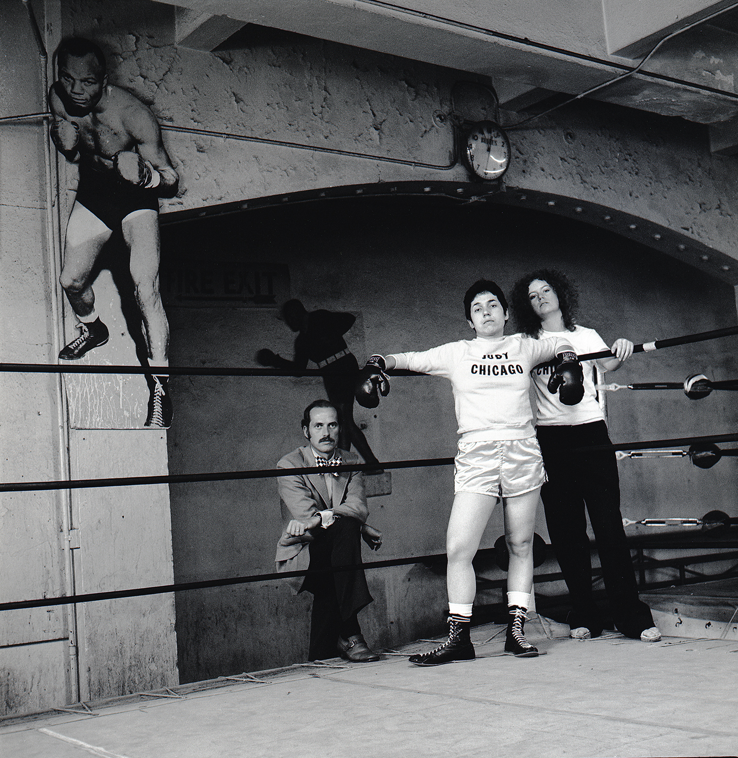 In 1970, the artist formerly known as Judy Gerowitz renounced ‘all names imposed on her through male social dominance’ and became Judy Chicago, doing away with both her paternal and marital surnames. She pinned the announcement to the wall of her exhibition of sprayed acrylic lacquer abstract paintings, then on show at California State College, Fullerton, and placed an ad in Artforum magazine. Other forms of self-fashioning were also afoot. For the exhibition poster Chicago posed as a prize fighter in a boxing ring. She appears, crop-haired and stocky, in shorts, ankle boots and gloves, leaning against the ropes. The words ‘JUDY CHICAGO’ are printed across the front of her sweatshirt. Six years before California licensed women as boxers, Chicago claimed the space all for herself.