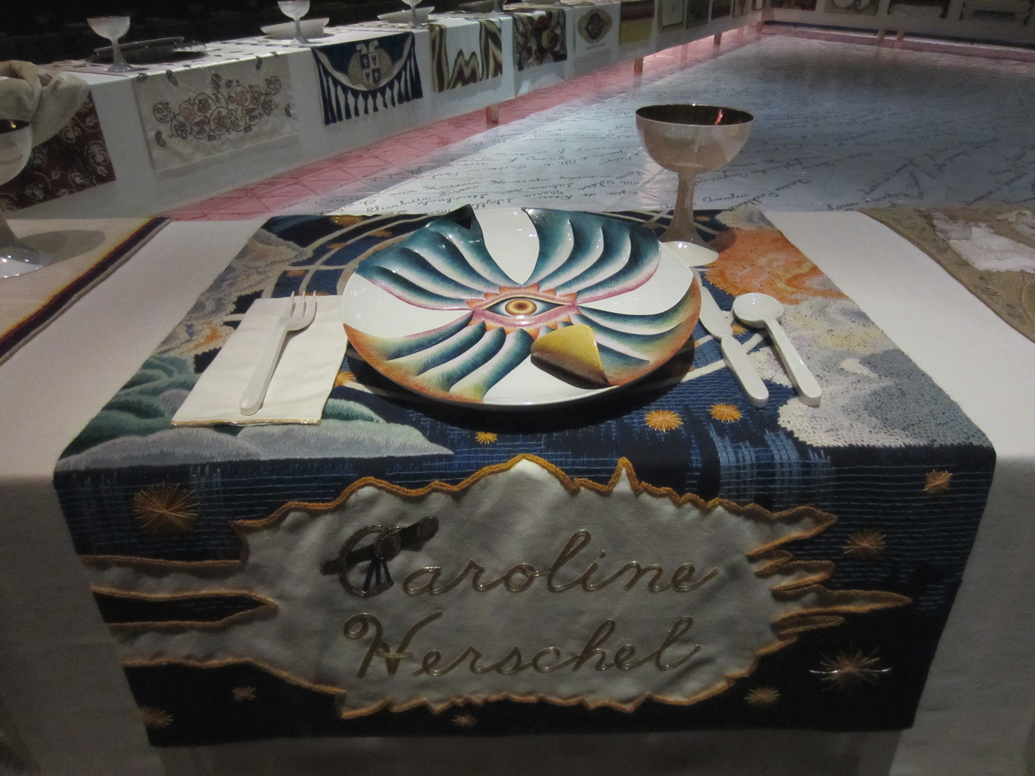 Chicago courted populism from the start. Her particular brand of feminism is fiery, accessible, but the politics behind it deserve to be taken seriously. The same is true of her need to hustle. Feminist artists don’t usually make much of a living from their work, and Chicago has never shied away from acknowledging the financial as well as the creative difficulties. She remains a firm and forceful advocate; her willingness to engage with younger feminists is unusual in an artist who came of age in a movement defined by binary, if not essentialist, thinking. Gloria Steinem was an early champion, as was Anaïs Nin, who encouraged Chicago to write what became the first instalment in her autobiography, Through the Flower: My Struggles as a Woman Artist, in 1975.