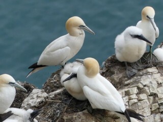 Last time I was here it was winter and I was watching humpback whales. This time I hardly dared lift the binoculars. That’s never happened to me before: a reluctance to go to the coast and, once there, a reluctance to scan the waves. But twenty miles due east down the firth stands the Bass Rock, the biggest gannetry on earth. The Bass is the plug of an ancient volcano. Nowadays, 150,000 gannets nest on its rocky flanks, and all over its plateau. So many gannets that the island gleams white with wings and guano. But today, even from this distance the colony looked depleted. More naked rock visible, fewer birds.