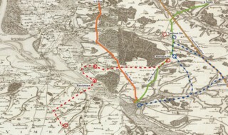 This is probably nothing more than a piece of post-battle scapegoating and one that started very early. (Philippe seems to have executed many Genoese after the battle, in sheer bad temper.) More pertinent is the question of how foot soldiers such as the Genoese got ahead of Philippe’s pursuing columns, when they should have been following behind. Livingston pays close attention to the relevant maps (César-François Cassini’s map of 1757 is reproduced with helpful overlays). Philippe was not only chasing, but trying to get ahead of Edward. The English had forded the Somme at Blanchetaque, where Edward had stopped only two nights before (as indicated by Retford’s invaluable kitchen receipts), had crossed the good road running north-west towards Calais and taken a cross-country track to the Hesdin road running north-east round the edge of the Forest of Crécy. Philippe, in hot pursuit from Abbeville, led his men in a loop east and then north, hoping to get to the Hesdin road before Edward arrived.