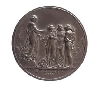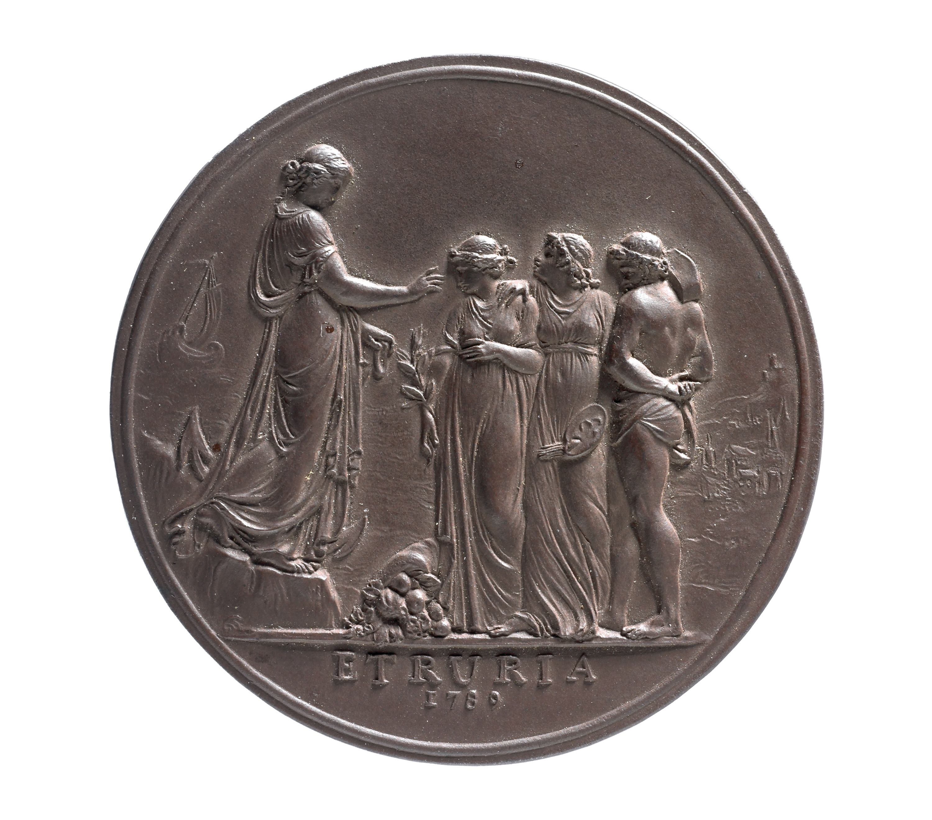 On the back of the medallion, Wedgwood staked his claim to the new creation: ‘Made by Josiah Wedgwood of Clay from Sydney Cove’. On the front, instead of the name of the new settlement, the word ‘Etruria’ appears in large letters. Was New South Wales to become a revived version of ancient Etruria, the home of hard-working, unpretentious farmers and potters? Or did Wedgwood imagine the colony as a version of his factory, which brought forth beauty and profit from the Staffordshire land and the hands of its workers? In 1794 an article in the Gentleman’s Magazine would describe the factory in explicitly colonial terms, linking settlement abroad with the changes wrought by industry on England: Etruria was ‘a colony newly raised in a desert, where clay-built man subsists on clay’.