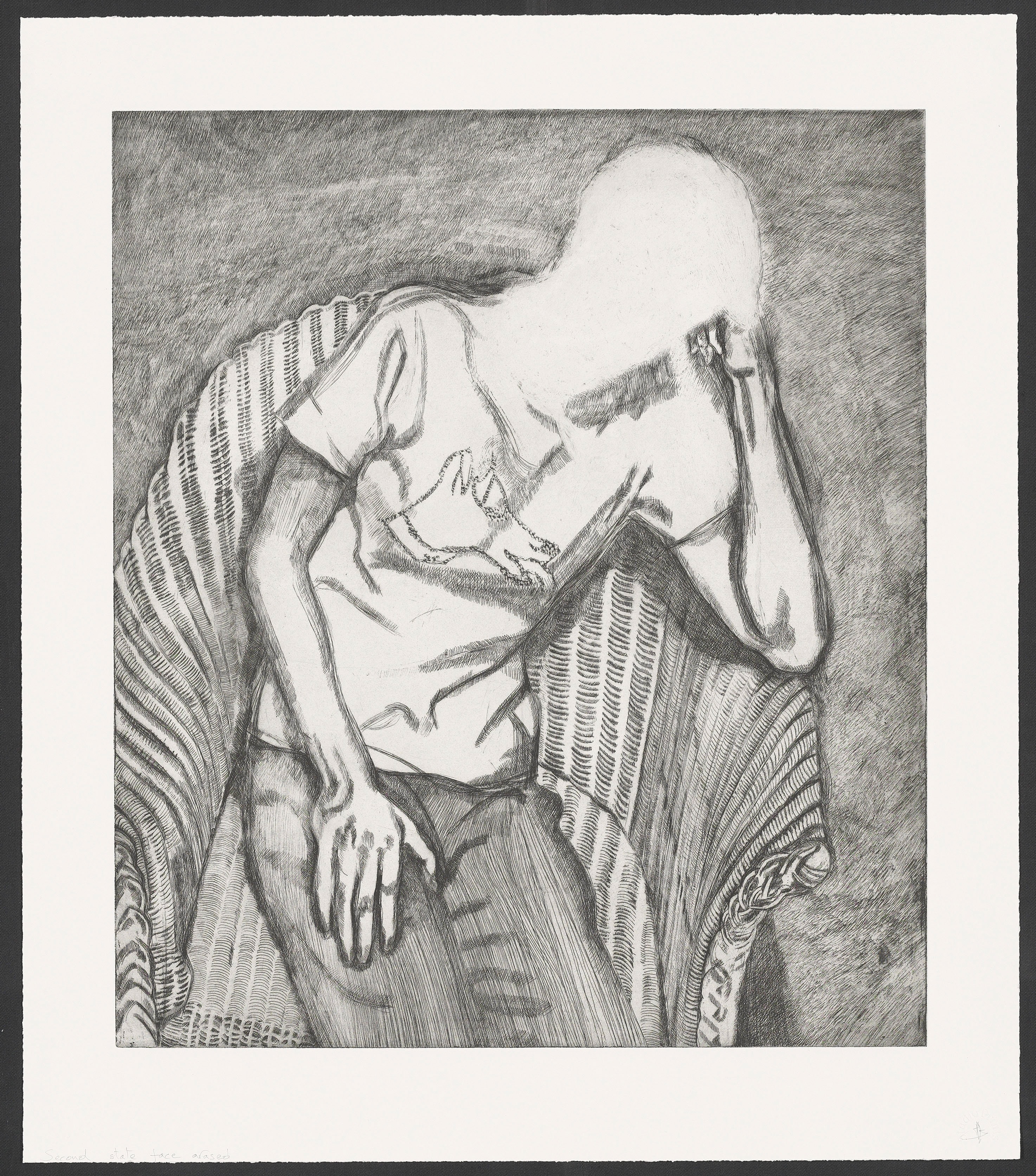 The first time I saw Lucian Freud’s prints I was repulsed, for reasons I could not have explained. Freud’s paintings of female flesh can be difficult to look at, but these were monochrome portrait heads, etched in hard black line. Did I find them cruel? I’m not sure. I certainly thought they were ugly. Decades later, after I had learned a bit about the process of etching, I became preoccupied by these strange, twisted, touching works, made in the last thirty years of Freud’s life. I was drawn to them with a vehemence that matched my initial distaste.