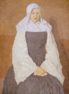 Her religious turn and formal conversion to Catholicism, in 1913, coincided with the crisis in her relationship with Rodin and her move to Meudon, where he lived. Not long after her acceptance into the Church, she was commissioned by the nuns at the local convent to paint a portrait of their founder, Mère Poussepin. John worked from an earlier, inferior painting reproduced on a prayer card and made six paintings of contained vitality. She went on to paint other nuns at the convent in the same 17th-century dress, which she made up from cloth she bought in Paris: a dull blue dress (or apron) with great soft white sleeves and a Dutch cap in still brighter white. The pictures themselves are not large or flamboyant, and some are almost austere. But they seem to vibrate. There are suggestions of movement in the cloth, in the stippling of paint (which sometimes looks like wear or decay) and the shakiness of brushstrokes. Shadows swim. And more than this, the sitters catch us with their mocking half-smiles, their hauteur, their impassive stares. They are most un-nunlike.
