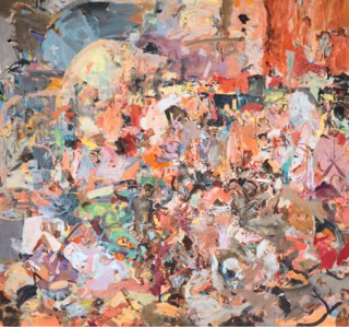 ‘Painted drama’ is a useful way of thinking about Brown’s method, which seems to proceed by intuition. Work of this kind is inevitably uneven, but the theatre may still be something to relish. Her paintings invoke turbulent and transgressive sensory experiences – they seem to come in and out of focus, slowly revealing recognisable details. Looking at her churning surfaces, I was reminded of Hannah Sullivan’s poem ‘You, Very Young in New York’: ‘you have been sleeping through a rainstorm,/Half aware of the sewage and frying peanut oil and the ozone/Rising in the morning heat.’ There is noise and flavour here, smells and images and something harder to define – atmosphere, or atmospheric pressure, the heaviness of heat and rain on a mind still half-asleep. Brown conjures a similarly porous sensuality.