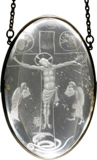 Rock crystal carvings from the Middle Ages are particularly enchanting. In certain parts of Europe, in workshops patronised by royalty, highly skilled sculptors learned to manipulate the optical properties of the stone for dramatic effect. A bulbous ninth-century cabochon, the size of a large goose egg and known as the Saint-Denis Crystal (from its historical association with the royal abbey), is one of the best examples of this optical playfulness. On its flat side, a scene of the Crucifixion has been engraved, with Christ at the centre, his arms outstretched, and Mary and John the Evangelist below. When turned over and viewed through the thickness of the egg-shaped cabochon, the scene of Christ’s painful sacrifice is magnified. Depending on the light source and your viewpoint, his body contorts this way and that, and Mary and John’s grief seems all the more intense.