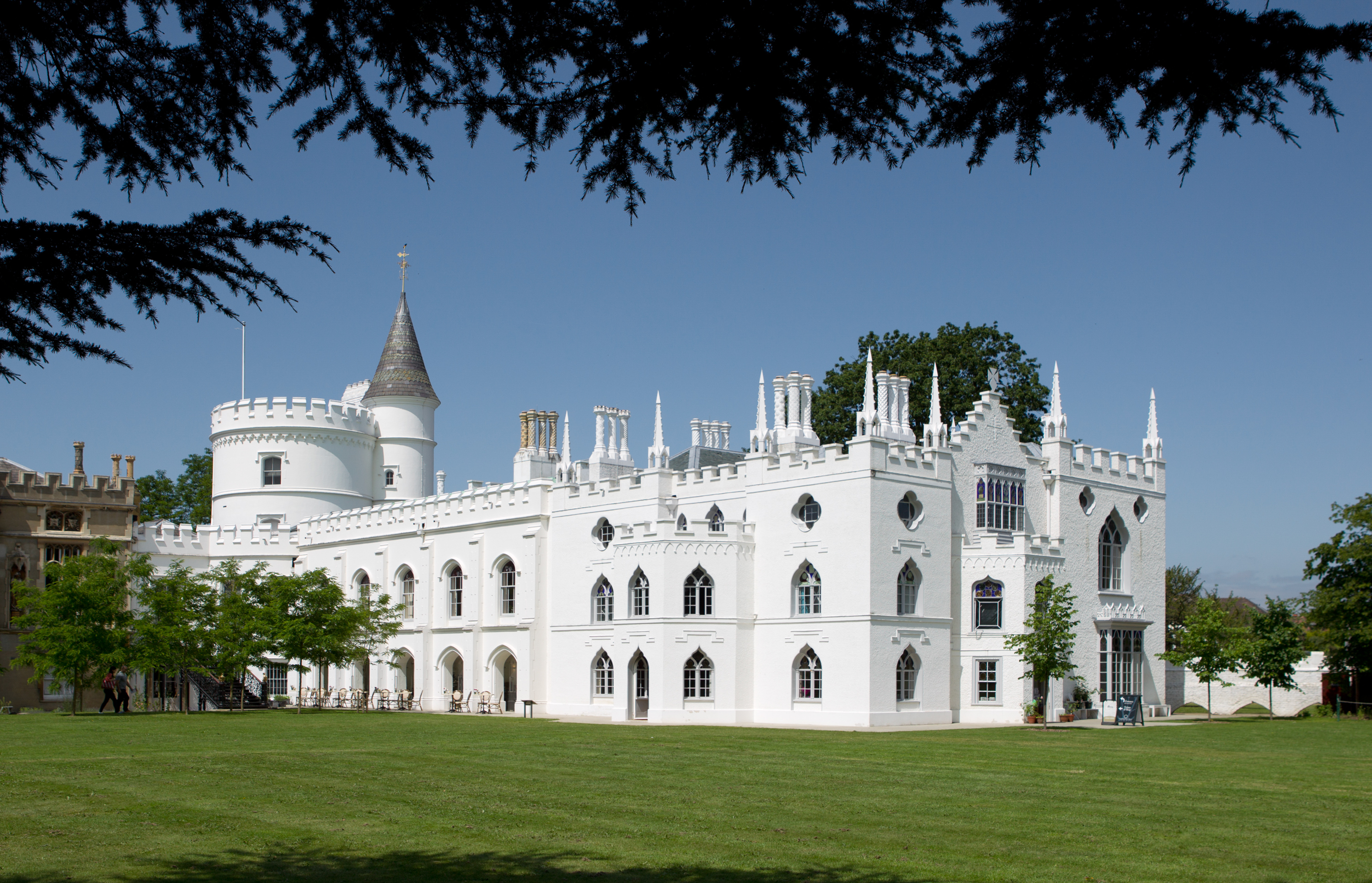 The British aristocracy and landed gentry’s preference for country life meant they concentrated their financial efforts on their estates. In town for the season, they were often content with a rented house in one of the terraces that lined the expanding streets and squares in strict classical rectilinearity, the housefronts made even flatter by the introduction of sash windows. The smart parts of Dublin, London and the New Town of Edinburgh were now at some points interspersed with crescents and circuses, modelled from the designs of John Wood and his son at Bath. Overall, however, the effect was uniform to the point of monotony. As the French émigré translator and Anglophobe Auguste Defauconpret put it in his memoir Une année à Londres (1819), ‘des briques, des briques, et toujours des briques’. There was already, however, a stirring of something else in the shape of an awakening interest in the architecture of the Middle Ages. The Gothic Revival, as it came to be called, while it does not defeat Brindle, gives him some trouble. Unlike Summerson, he does not want to play it down, dismiss it as inferior or treat it as an aberration, but it is too complicated and entangled with politics and the dawn of Romanticism to fit into his periodic chronology. If Classical architecture was developed on paper, Gothic was almost as much paper as structure. Horace Walpole used to joke that his villa at Strawberry Hill, the first important Gothic house, was a paper toy (which was literally true in so far as the ‘battlements’ were made of papier-mâché), but more importantly it was the stuff of literature, the setting for Walpole’s Otranto, the first Gothic novel. From its beginnings in the 1750s, the Gothic Revival had literary and social implications on a scale that vastly outweighed its architectural expression. Its contrarian basis of protest and cultural critique appeared in many forms, from the Whig factionalist Lord Cobham’s Temple of Liberty at Stowe to the High Tory Roger Newdigate’s alterations to Arbury, and persisted through Walpole and William Beckford, transgressing the demarcation lines of Brindle’s chapters. He is obliged to cut it off in the 1760s only to admit later on, with a note of resignation, that ‘the Gothic theme had never gone away.’ By the turn of the 19th century it had become a significant element in a period of cultural complexity.