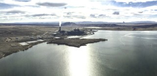 Aband of light, reflected across the waters of Morgan Lake, New Mexico, leads our eyes from the centre foreground to a power plant on the Navajo Reservation: the Four Corners Power Plant, one of the largest coal-fired generating stations in the United States. In this photograph by the Diné artist Will Wilson, the plant is entirely in shadow, as dark as the bituminous coal that fuels it. Morgan Lake is an artificial formation, built in 1963 to serve as a cooling pond for the plant, its water constantly replenished by the San Juan River.