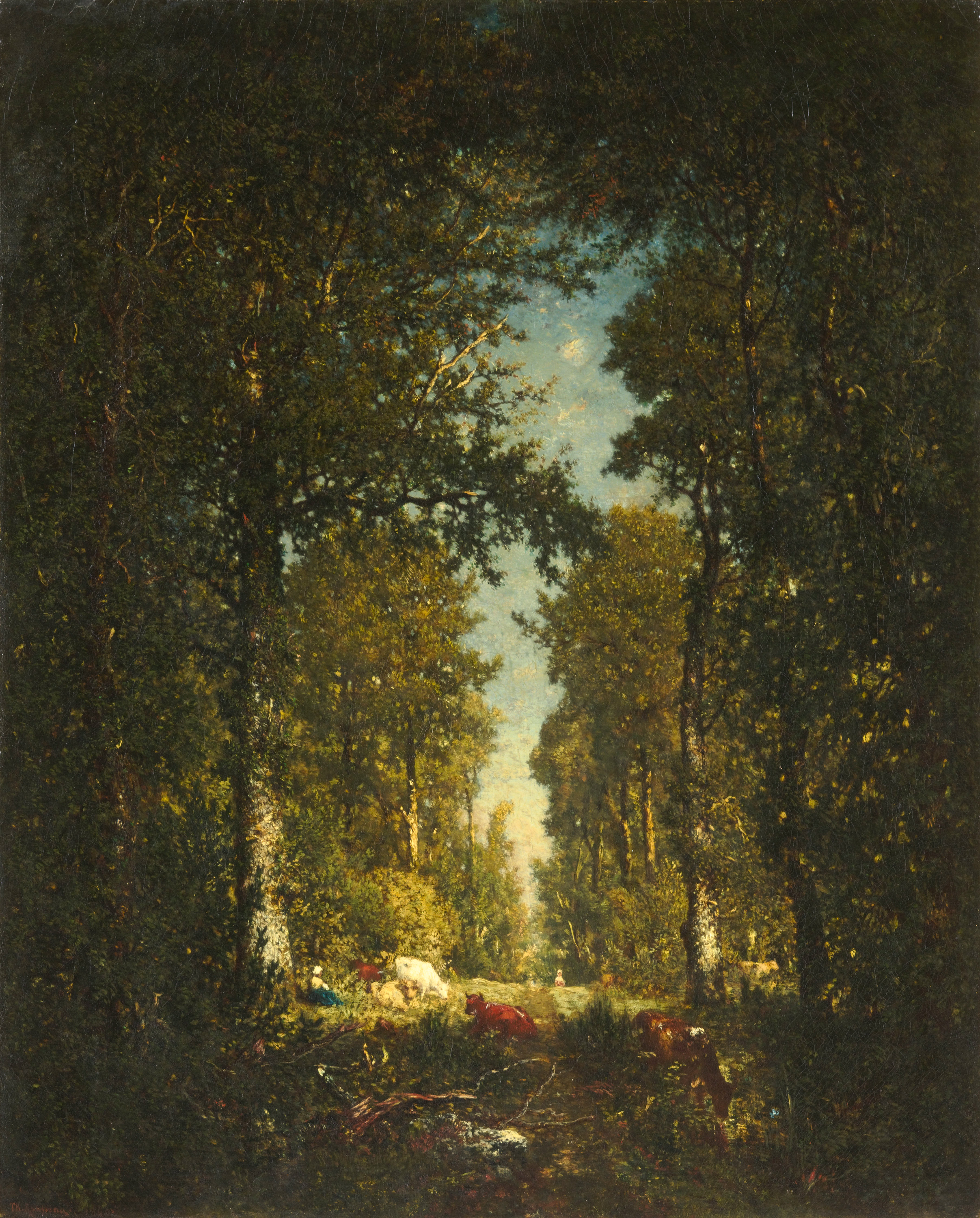 On hot summer days, Parisians escape to the suburb of Fontainebleau. After the Château Royal, the forest is the city’s second monument, or at least that’s the way Théodore Rousseau saw it: a refuge from inflation, pollution, noise and epidemics (in 1849, artists confined themselves there to escape a cholera outbreak), and an inheritance. From the 1830s, Rousseau, Jean-François Millet and others converged every summer in the village of Barbizon on the forest’s northern edge. There they worked on naturalistic depictions of the French countryside, inspired in part by Constable’s exhibition at the Salon in 1824, making no apology for their departure from historical and mythological narratives and from the then dominant preference for Italian landscapes.