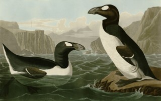 The great auk, or garefowl, was a flightless North Atlantic seabird and it tasted delicious, perhaps a little like duck with a hint of seaweed. It’s hard to be sure because by the 1860s the great auk was extinct. It had once been abundant: in the 16th century, a breeding ground off Newfoundland – known as Funk Island for the overpowering stench of guano – offered a welcome source of sustenance for European sailors crossing the Atlantic. One sailor wrote that there was ‘more meat in one of these than in a goose’; another described the auks as ‘so fat that it is marvellous’. By the early 19th century, their breeding grounds had dwindled to a few isolated outposts, including two seastacks off the southern coast of Iceland. A volcanic eruption in 1830 caused one to sink beneath the waves, leaving just Eldey, a seven-acre lump of rock, as their last known stronghold.