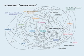In his closing statement, Richard Millett, lead counsel for the inquiry – responsible for examining all the witnesses and ensuring its terms of reference were addressed – presented a ‘spider’s web of blame’: the image showed a tangle of arrows going between Kensington and Chelsea Council, testing bodies, architects, manufacturers and construction companies. It’s almost impossible to decipher, and that was his point: each arrow represented one party’s attempt to shift responsibility to another and back again – a sorry repetition of the ‘merry-go-round of buck-passing’ that Millett argued had characterised the first phase of the inquiry. In countries with sophisticated regulatory regimes, catastrophes such as Grenfell ought to be impossible: when they occur they are invariably multi-causal, the result of many overlapping failures. This complexity is often taken to be exculpatory and used by guilty parties to muddy the issue of responsibility. Lawyers for the bereaved asked the inquiry not to get entangled in this web, but instead to begin to apportion the degree of responsibility borne by the various parties. The final report assigns ‘considerable’ or ‘very significant’ responsibility for the fire to the contractors and subcontractors who executed the refurbishment.