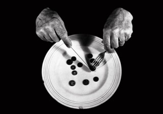 Some of Kennard’s photomontages directly invoke avant-garde precursors such as John Heartfield, Hannah Höch, Alexander Rodchenko or Bertolt Brecht’s War Primer. A pair of hands with knife and fork, poised above a plate sparsely scattered with small change, is a Thatcher-era variation on Heartfield’s Hurrah, the Butter is Gone! (1935): a family glutting themselves at a dinner table laden with machinery, tools and weapons. So far so direct – but Kennard can also come close to the more oblique or Surrealist montage of an artist such as Dora Maar. Isolation Cell (1974) shows a figure suffering, possibly strapped, on a bare cot, while in the foreground there looms a huge hand – mechanical, organic, allegorical or hallucinated? Isolation Cell has the obscure, nightmarish atmosphere of Maar’s Le Simulateur (1935), in which a small boy is shown arched in what might be agony or demonic possession inside a dark vaulted space.