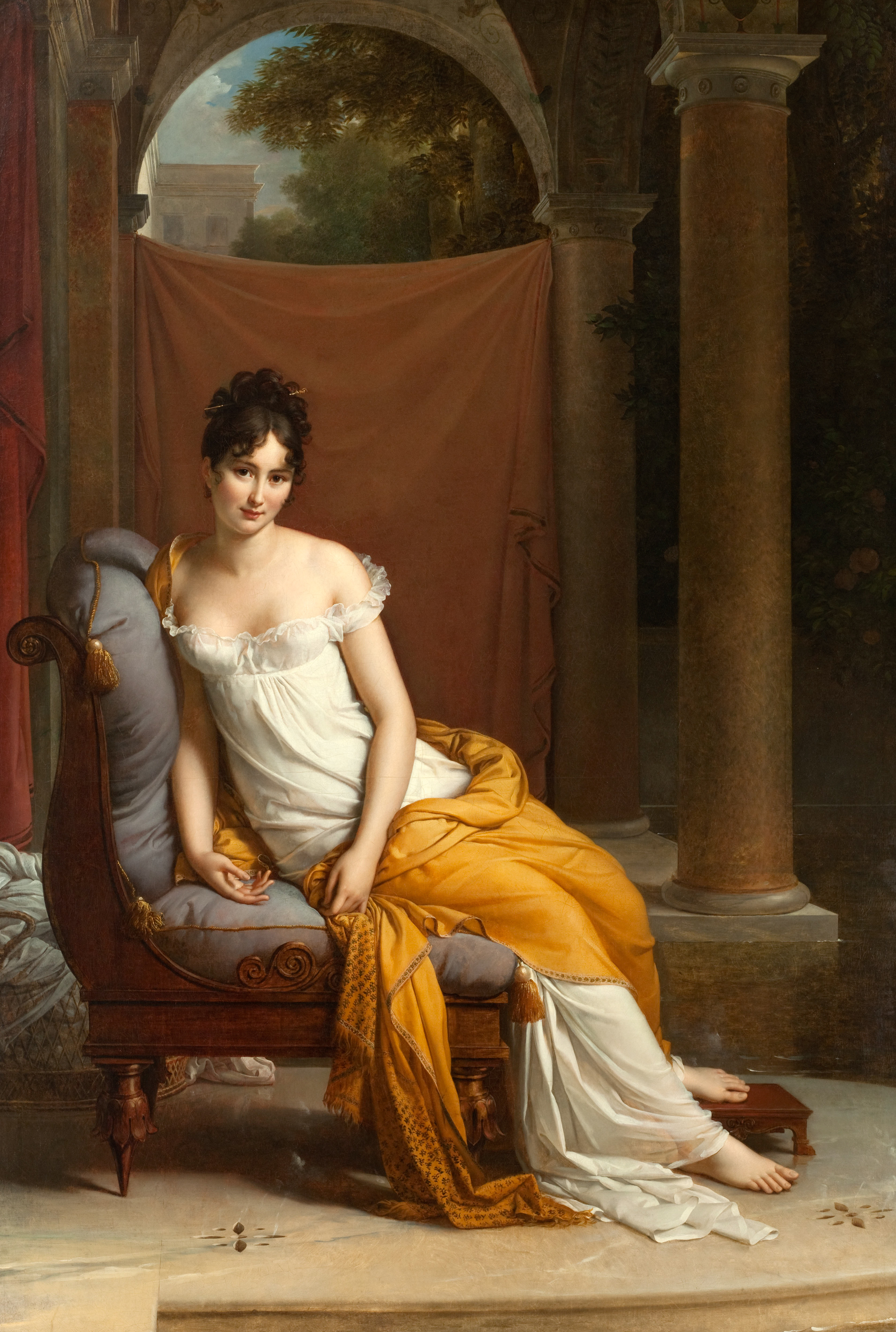 Juliette’s fate was more peculiar. Her unconventional but apparently affectionate family was panic-stricken. Two of the three men had dangerous professional links to the Ancien Régime. Récamier was so certain of his doom that he watched the executions of the king and queen in order to prepare himself for his own. Bernard, Juliette’s official father, was similarly imperilled. In one of the more desperate measures of these desperate times, they decided to secure Juliette’s status as legal heir to Récamier by marriage. In April 1793, 15-year-old Juliette was married to her 42-year-old father, who was still in love with her mother. The assumption seems to have been that his imminent death would leave her free and financially secure. It was a noble act on Récamier’s part, but it became a reverse Sydney Carton, for he was not executed. He survived the Terror and lived until 1830. Juliette was trapped. A divorce process would have revealed the terrible truth, so she and Récamier had to live with their secret for 37 years.