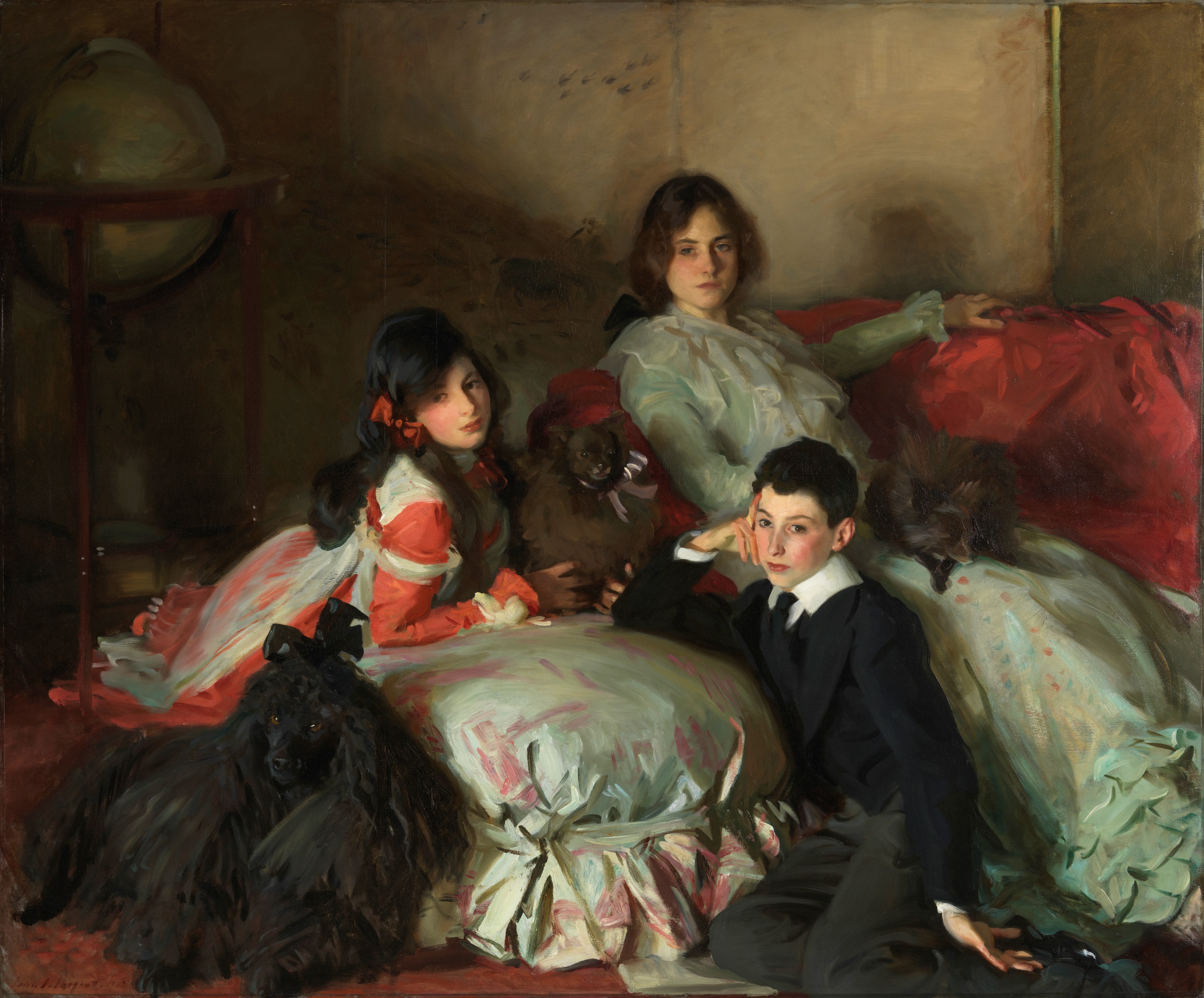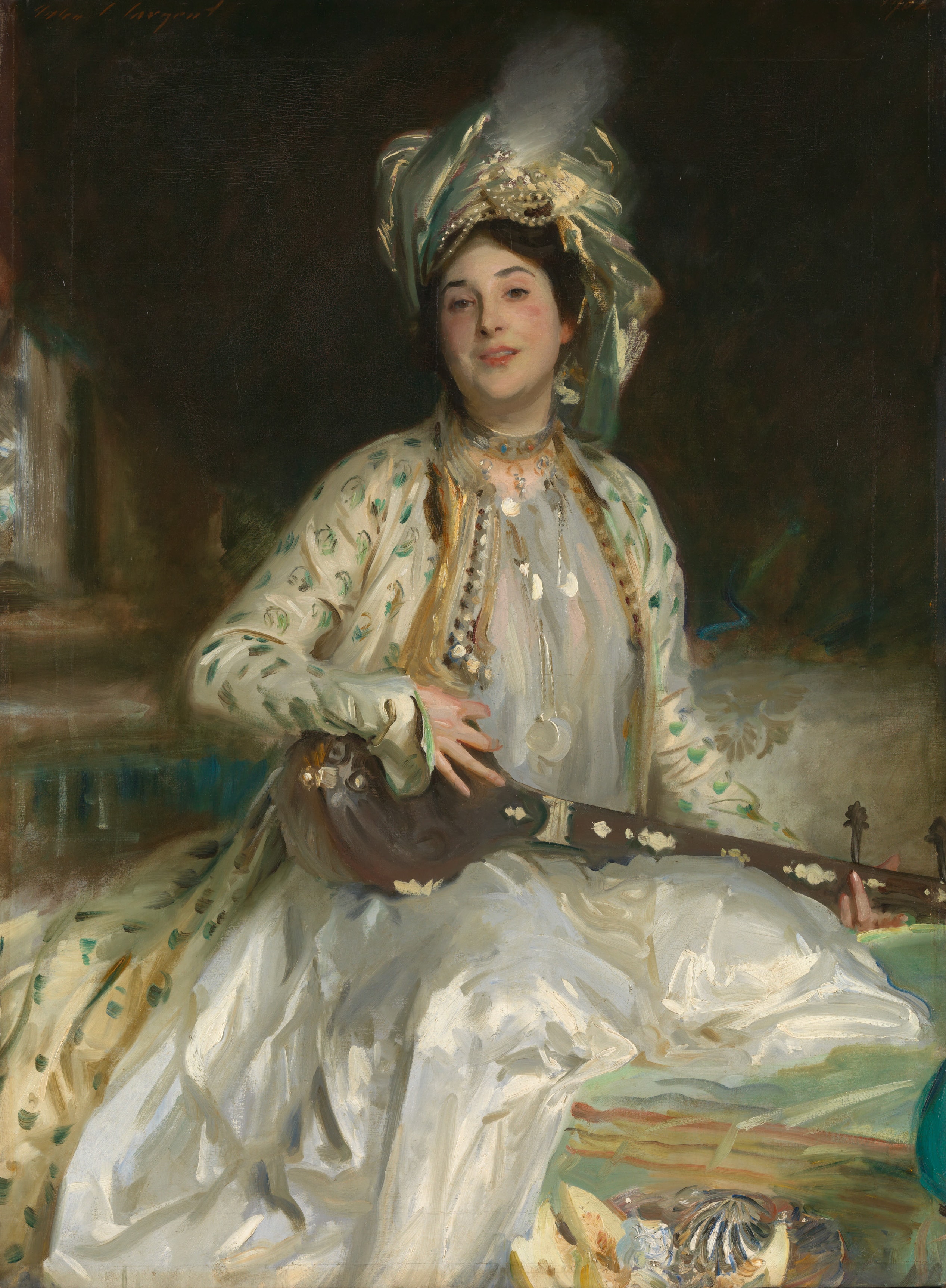 He did, however, produce two groupings of the younger Wertheimer children: Essie, Ruby and Ferdinand (known as Bob), seated informally at home in 1902; and Hylda, Almina and Conway, set outdoors in an arrangement that lacks spontaneity. He also painted Almina as a harem slave. The portrait plays with the 18th-century Orientalist tradition but gives it a knowing contemporary edge. Asher hung it in his morning room at Connaught Place, next to the dining room where eight others were on display. In 1922 he gave this group (nine of his twelve Sargents) to the nation.
