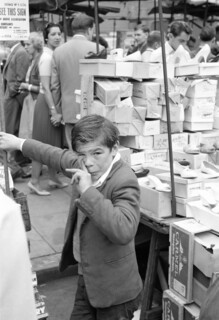 The snapshots in Peter’s book were taken during his first three years in London, after he emigrated from New Zealand with my mother. The picture shown here was taken at a Stepney street market. I wonder whether this was one of the photographs he had in mind when, some years later, in a review for the Listener, he wrote: ‘When a glum, derisive, sulky or tired face looks out at you, remember it is the photographer he is seeing – not you.’