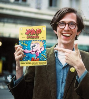 Before Crumb, no artist had so openly used comics as a means of personal expression. After Crumb, the deluge, starting with the underground cartoonists who followed in the wake of his Zap Comix (1968), a 24-page pamphlet that – according to one of his drawings – Crumb and his first wife, Dana Morgan, sold for a quarter out of a baby buggy on the streets of Haight-Ashbury. The cover was designed to shock, depicting a self-electrocuting naked man, plugged into a light socket and launched into the air in a foetal position. Addressing itself to ‘flipped out flower kids’, Zap proselytised for marijuana and introduced Crumb’s irascible Old Testament guru, Mr Natural. News stands and bookshops were afraid to carry it, but subsequent issues soon appeared in head shops across America.