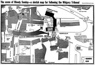 At this point a search for witnesses began. The most obvious place to start was the wounded in Altnagelvin Hospital. At this point I suggested that an artist should come over, and John Butterworth arrived and quickly and competently drew up our map – which incidentally is being used by Widgery and his team.
