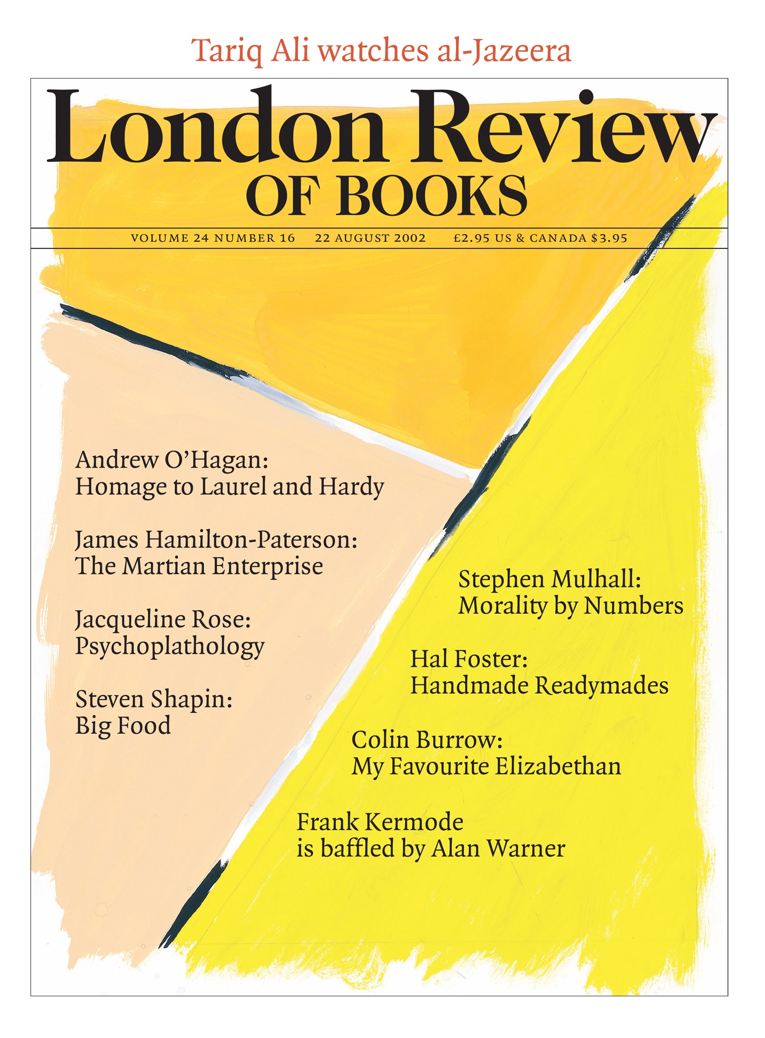In Cairo and Abu Dhabi, the two Arab capitals I have visited this year, street and palace are for once in harmony. A pre-emptive strike against Saddam Hussein on the grounds that he might, at some point in the future, authorise the production of nuclear weapons, would be, for the people of the region, a classic display of imperial double-standards. They know that the only country which possesses both nuclear and chemical weapons is Israel. Arab public opinion has not been so united for decades. And a cable television station, al-Jazeera (‘the Peninsula’), has played a crucial part in both promoting and symbolising this unity. It has raised mass consciousness in the region, by providing a ruthless analysis of what is wrong with the Arab world.