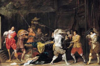 He has found scenes of plunder by Anthonie Palamedesz and Pieter Codde, better known for ‘merry company’ paintings, and by Willem Duyster, mostly known for pictures of companionable soldiers chatting and smoking. The work discussed in this chapter evokes an aspect of military life that rarely comes to mind when we think of Dutch soldiers in art. We are more familiar with Frans Hals and Rembrandt’s stolid groups of Civic Guards; or with the officers painted by Ter Borch, De Hooch and Vermeer making muted advances to ringleted girls in bright rooms, or writing them letters to be dispatched by a waiting trumpeter; or with soldiers drinking at disorderly inns, or struggling into their armour in cluttered guard-rooms. No one is doing any harm in these pictures, or ordering harm to be done.