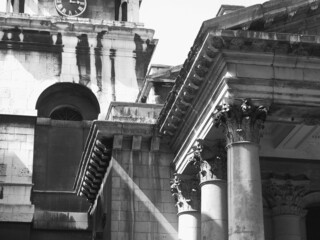 A generic medieval parish church would have, as well as a nave and altar, aisles, a chancel and, perhaps, chapels. These had fallen into disuse, and although they would become functional again in the 19th century, when Anglicans began to revive the forms of Catholic worship, they were not in the specification for the new churches. Architectural and liturgical fashion are not always in step, but the rectangular preaching box the Commissioners wanted served the taste and ambitions of English baroque architects pretty well. While it excluded the multiple symmetries possible with a Greek-cross or an oval plan (Hawksmoor first proposed an oval plan for St George’s), it had none of the bits-added-on character of the older model. It offered a simple volume in which to play games with the classical orders. They, and the rules associated with them, both stimulated invention and put a limit on personal eccentricity.