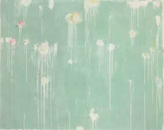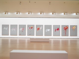 This tactility appears to be missing from the Discourses on Commodus series: nine smooth grey backgrounds each with a double burst of colour, progressing through white, pink, red and yellow. They were first shown in 1964 in New York, where they went down badly. Now they are so revered it’s easy to laugh at the short-sighted critics and contemporaries, who deemed them ‘Europeanised and precious’. But in comparison with his other works of this period, the Commodus paintings do seem contradictory. They have a central object – the whorl of colour. The contrast of the grey gives them a ground: there’s a sudden artificiality about the pictorial space. The colours are so lurid they seem to mock the pretension of the title. Unlike the School of Fontainebleau, which makes the viewer work across its surface to take in all the disparate (and seemingly disconnected) details, here everything happens at once. Twombly’s better pictures, like Ferragosto II, maintain a lively tension between all the different marks and areas of colour; they don’t have any depth but instead launch off the canvas. They continue to be interesting to look at. The Commodus paintings are immobile; the double suggestion of blood and bouquets (they are usually interpreted as a response to JFK’s assassination) too artfully set off.