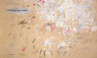 Twombly studied in Boston and Lexington, and in New York, where he met Robert Rauschenberg. The two of them spent time at Black Mountain College in 1951. Twombly’s early works, and many of the later ones, make sense as an offshoot of Abstract Expressionism. But it wasn’t the openness of Kline or Pollock that he was drawn to. Twombly liked working at one remove, obliquely. He always seems determined to complicate our responses to his surfaces; they can’t be read as straightforward action paintings. The retrospective at the Pompidou (until 24 April), which is arranged chronologically, charts the different distances Twombly wants us to have from the work. Part of the problem is literal distance. The white-on-white paintings (all called Untitled) from the late 1950s that open the exhibition are full of tiny pencil details and marks in crayon. When you stand back from them, the different shades of white paint create a strange luminescence under the gallery lights, but it’s only up close that you can see – and try to decipher – the flecks and scribbles. It’s impossible to take in a whole work; every time you approach one something different catches your eye.