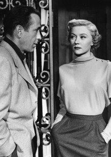 What difference does knowing there were two endings make? Well, to begin with, it may seem surprising that the resolution in which Bogart is revealed to be the killer was the original, accepted one – except that everyone knew that from the book. As it happens, Production Code officials were against his being portrayed as a psychopath, and would only agree to the star playing a murderer if his character was seen to have been provoked. Bogart’s co-producer, Robert Lord, brokered the agreement: Bogart wouldn’t play a serial killer. He’d be a suspect, but someone else would be found guilty of those murders. However, he would crack under the pressure of suspicion and end up murdering his girlfriend. So in one interpretation of the jettisoned ending, Bogart and Grahame play a perfect couple caught in the jaws of the system. Superficially, this is a more brutal result, but it’s also a conventional one. The unconventionality of the eventual ending used – its painful nuance and drastic suspension – makes it more sinister.