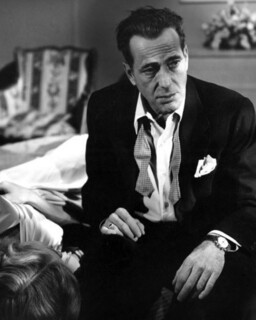 In one of the best seduction scenes in cinema, an interrogation becomes a flirtation: third-person, no eye contact, refracted through the cops’ questions. The setting is the office of Captain Lochner in Beverly Hills police station. The language is the language of evidence. Dix Steele, a Hollywood screenwriter, has been called in over the murder of Mildred Atkinson, a girl he was with the previous evening. We’ve already seen Bogart-as-Dix take little interest in Mildred, whose job was to tell him the plot of a terrible novel he’d bleakly agreed to adapt, and here he takes no interest in her murder either. Lochner sees Dix’s indifference as incriminating – his response to the news, the policeman says, is ‘just petulance. A couple of feeble jokes.’ Dix doesn’t let up. ‘I grant you, the jokes could have been better, but I don’t see why the rest should worry you.’