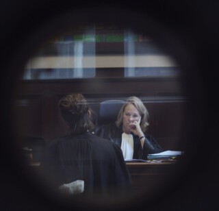 When the artist Carey Young first began exploring the Palais, she was struck by the female judges and lawyers. She spotted five women in conference in a courtroom; they spotted her, and rushed to close the door. Young’s 18-minute video Palais de Justice, which is on show at the Towner Art Gallery in Eastbourne (until 2 June), is a meditation on authority and visibility. After her request to film in the building was denied on security grounds – a magistrate and her clerk were murdered in court in 2010 – Young decided to work surreptitiously, with the help of an assistant, a small tripod and long lenses. A Belgian lawyer advised her, if caught pointing her camera into courtrooms, to say that judges are public figures and possess no right to privacy while at the bench. The argument worked on the few security guards who tried to stop her.